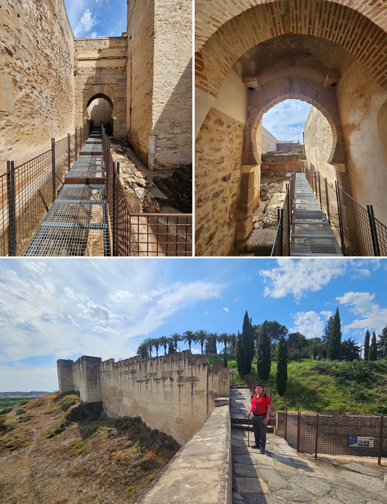 In terms of shape, the Alcazaba of Badajoz is oval and measures over 600 meters in total. It extends up to about 1,200 meters and covers roughly 8 hectares of land. The materials used in its construction were brick, stone, masonry, and mortar. The top of the wall features a walkway, called the adarve, which connects all the towers and allows visitors to walk along and monitor the entire area.