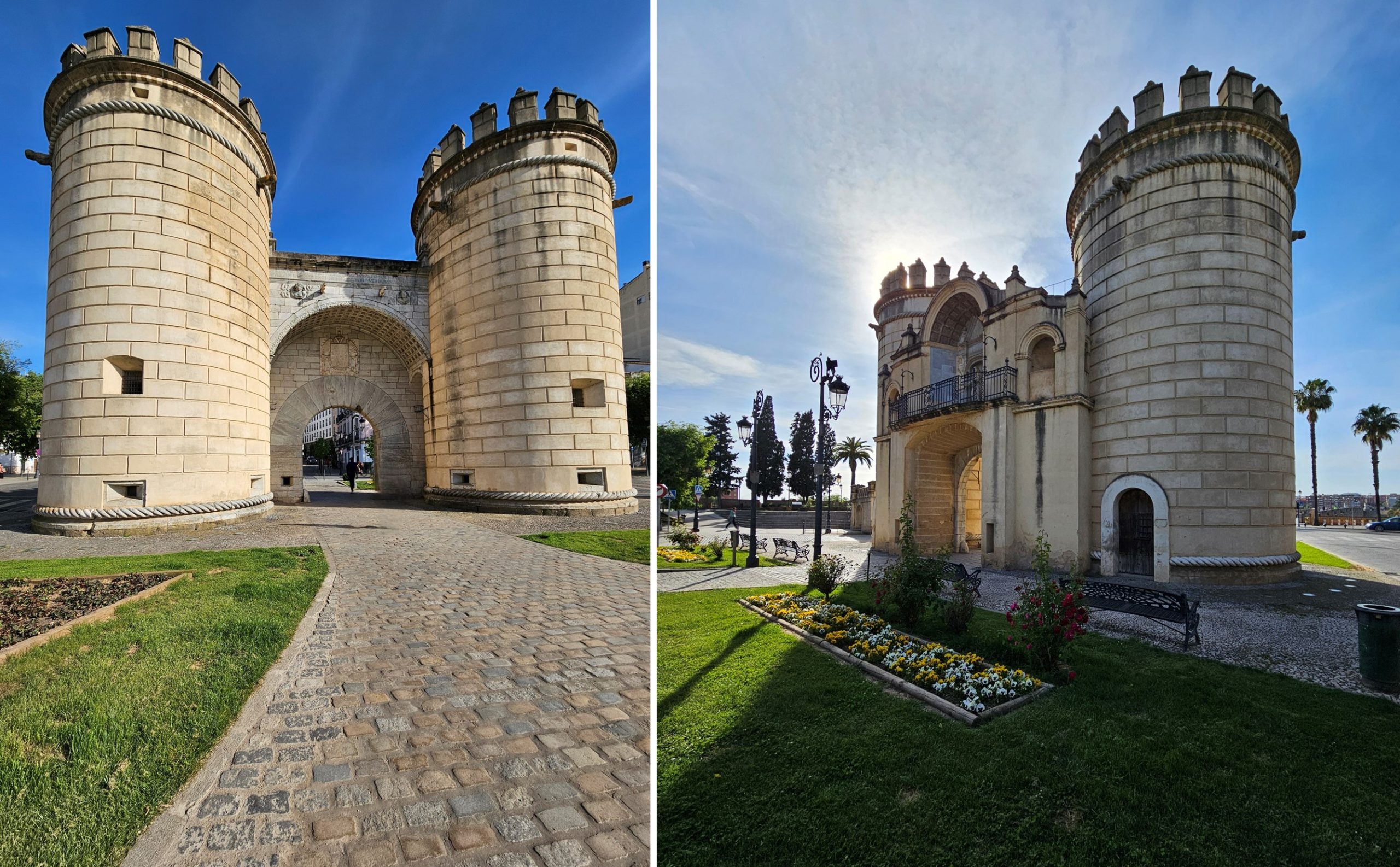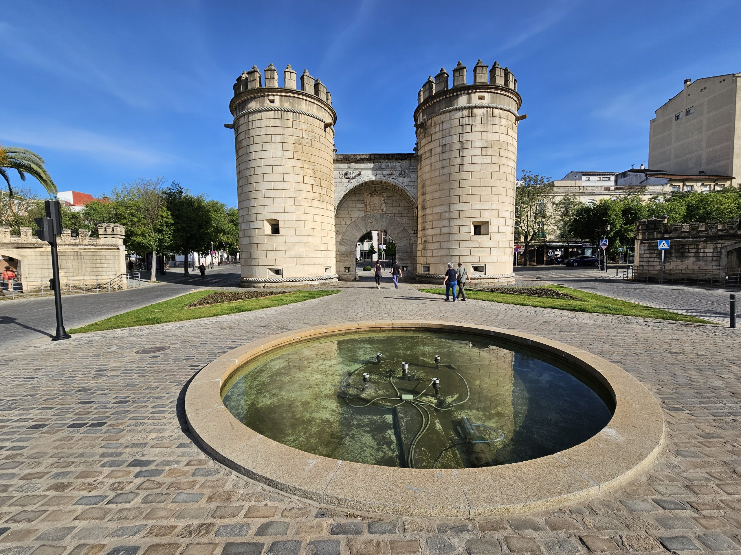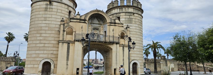 La Puerta de Palmas, anteriormente conocida como “Puerta Nueva”, es uno de los monumentos más emblemáticos de Badajoz, ciudad de Extremadura, España, y una de las huellas más destacadas como antigua ciudad fortificada, que en siglos pasados necesitó de sus murallas para su defensa. Su construcción culminó en 1551 y se trató de un acceso monumental a la muralla que rodeaba esta ciudad, ubicada frente al Puente de Palmas.